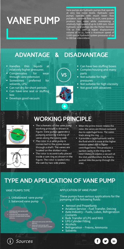 - The schematic of the vane pump working principle is shown in figure. Vane pumps generate a pumping action by tracking of vanes along the casing wall.