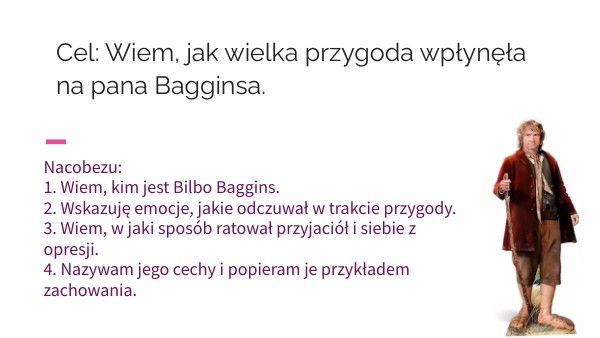 Cel: Wiem, jak wielka przygoda wpłynęła na pana Bagginsa.