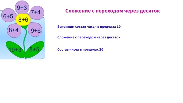 Чтобы быстро складывать числа с переходом через десяток, можно выучить состав чисел в пределах 20.
