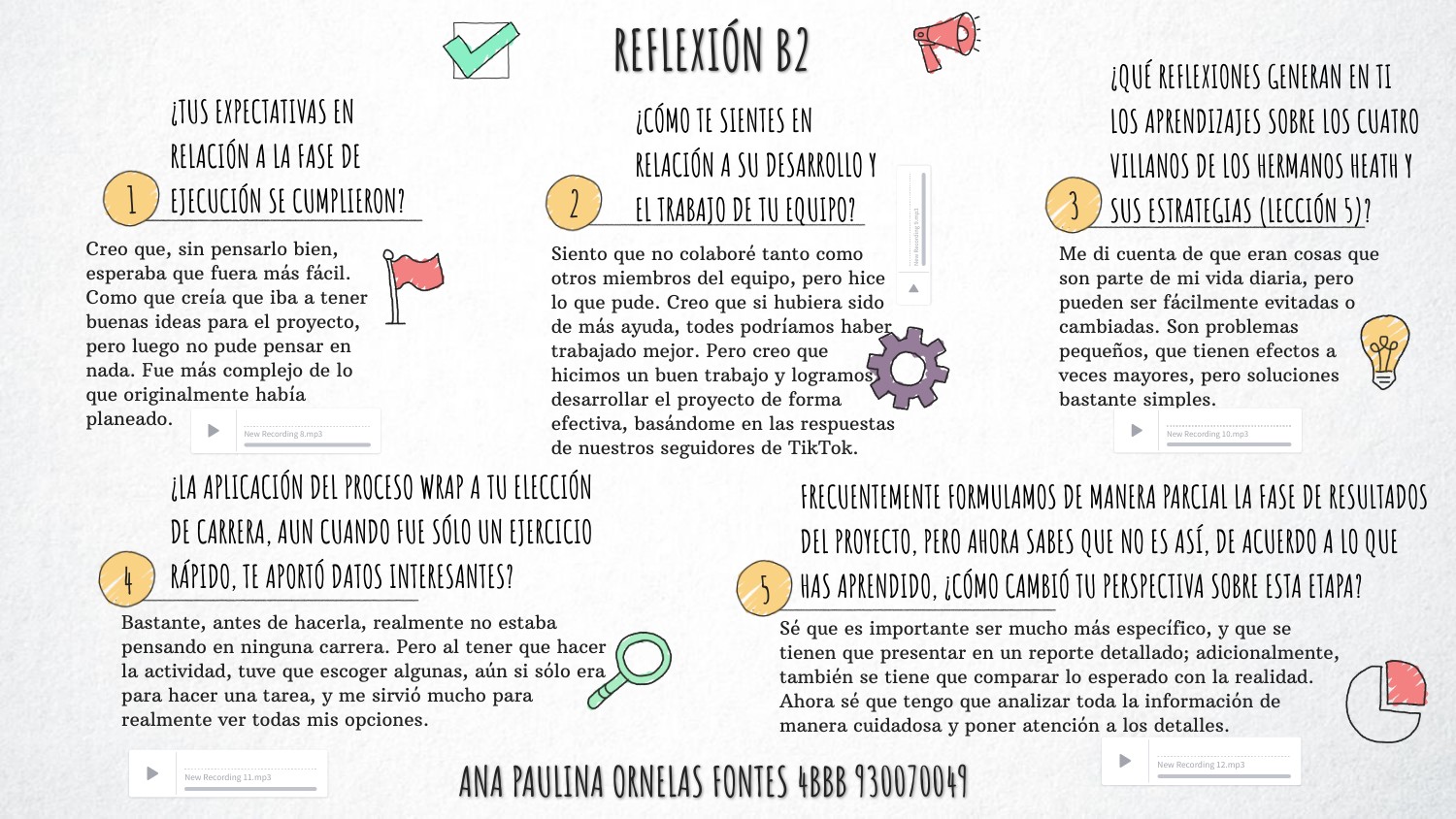 Siento que no colaboré tanto como otros miembros del equipo, pero hice lo que pude. Creo que si hubiera sido de más ayuda, todes podríamos haber trabajado mejor. Pero creo que hicimos un buen trabajo y logramos desarrollar el proyecto de forma efectiva, basándome en las respuestas de nuestros seguidores de TikTok.