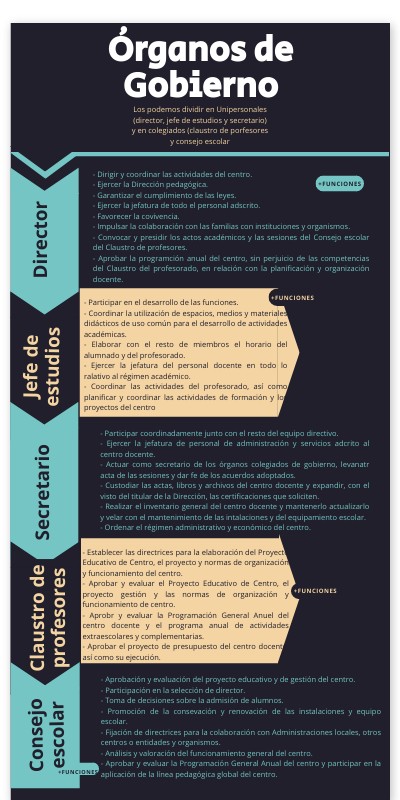 Los podemos dividir en Unipersonales (director, jefe de estudios y secretario) y en colegiados (claustro de porfesores y consejo escolar