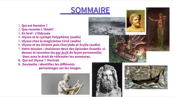 Vous avez le droit de réécouter les aventures. 8. Qui est Ulysse ? Portrait 9. Devinette : identifiez les différents personnages sur les images.