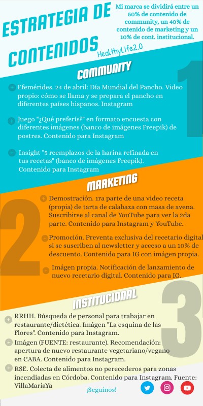 Mi marca se dividirá entre un 50% de contenido de community, un 40% de contenido de marketing y un 10% de cont. institucional.