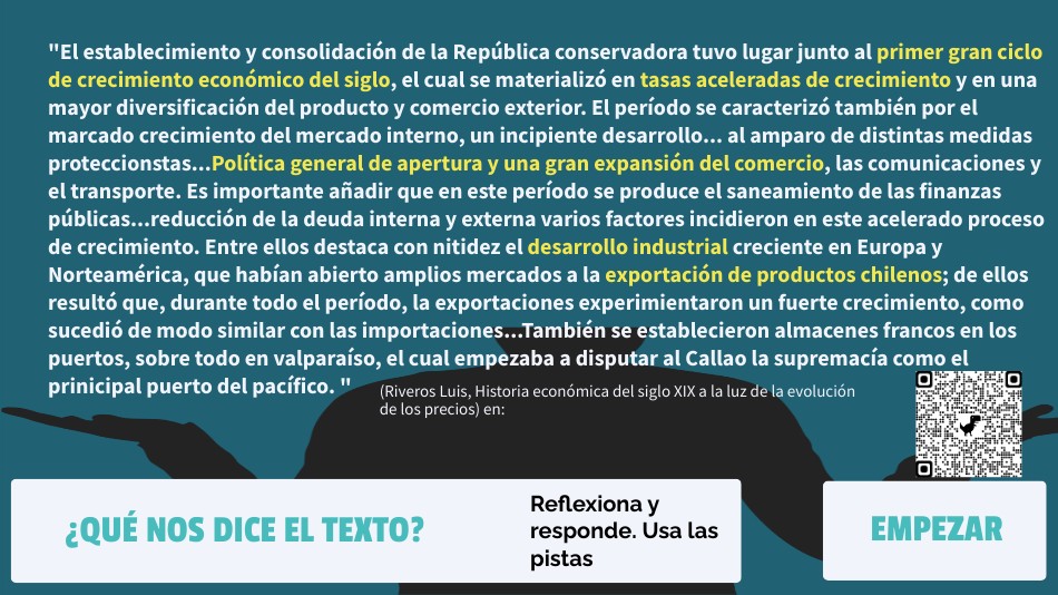 Preguntas sobre la economía durante los gobiernos conservadores o república autoritaria. Potencian el pensamiento crítico de los alumnos. economía siglo XIX, gamificación en historia, historia de Chile, ciencias sociales, preparación PSU. contacto ticinclusioneducacion@gmail.com