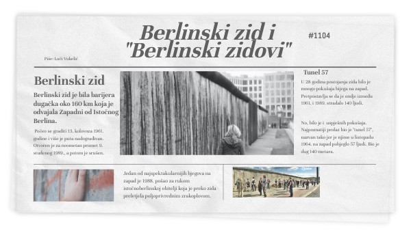 https://hr.wikipedia.org/wiki/Berlinski_zid https://www.enciklopedija.hr/natuknica.aspx?id=7126 https://balkans.aljazeera.net/interactives/2017/10/1/infografika-trumpov-granicni-zid https://balkans.aljazeera.net/news/world/2019/1/10/autoput-sa-zidom-koji-dijeli-izraelski-i-palestinski-saobracaj https://www.militaryhistories.co.uk/greenline https://www.dw.com/hr/minsko-polje-i-zona-smrti-kao-turistička-atrakcija/a-50897675 https://www.rtl.hr/vijesti-hr/novosti/zanimljivosti/3593541/mucan-simbol-podjele-srusen-je-prije-30-godina-jeste-li-znali-za-ovih-5-cinjenica-o-berlinskom-zidu/ https://balkans.aljazeera.net/interactives/2017/10/1/infografika-trumpov-granicni-zid https://punkufer.dnevnik.hr/clanak/putovanja/east-side-gallery-berlinska-galerija-s-pricom---572139.html https://www.dw.com/hr/gdje-danas-postoje-berlinski-zidovi/a-15311237 https://www.dw.com/hr/zid-između-katolika-i-protestanata/av-19170565 https://studentski.hr/vijesti/svijet/najopasnija-i-najkrvavija-granica-na-svijetu
