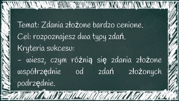 Temat: Zdania złożone bardzo cenione. Cel: rozpoznajesz dwa typy zdań. Kryteria sukcesu: - wiesz, czym różnią się zdania złożone współrzędnie od zdań złożonych podrzędnie.