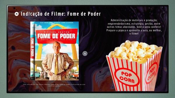 Administração de materiais e produção, empreendedorismo, estratégia, gestão, entre outros temas abordados. Vale a pena conferir! Prepare a pipoca e aproveite a aula, ou melhor, o filme!