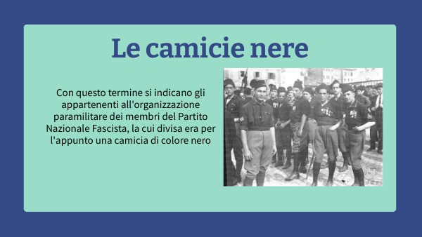 Con questo termine si indicano gli appartenenti all'organizzazione paramilitare dei membri del Partito Nazionale Fascista, la cui divisa era per l'appunto una camicia di colore nero
