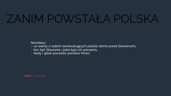 Nacobezu: - co wiemy o ludach zamieszkujących polskie ziemie przed Słowianami, - kim byli Słowianie i jakie były ich wierzenia, - kiedy i gdzie powstało panstwo Polan.