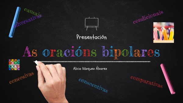 Descrición dos distintos tipos de oracións bipolares: causais, concesivas, condicionais, consecutivas, comparativas e adversativas con exemplos analizados.