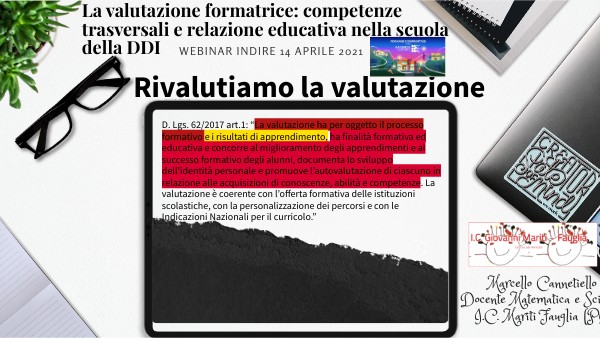 D. Lgs. 62/2017 art.1: “La valutazione ha per oggetto il processo formativo e i risultati di apprendimento, ha finalità formativa ed educativa e concorre al miglioramento degli apprendimenti e al successo formativo degli alunni, documenta lo sviluppo dell’identità personale e promuove l’autovalutazione di ciascuno in relazione alle acquisizioni di conoscenze, abilità e competenze. La valutazione è coerente con l’offerta formativa delle istituzioni scolastiche, con la personalizzazione dei percorsi e con le Indicazioni Nazionali per il curricolo.”