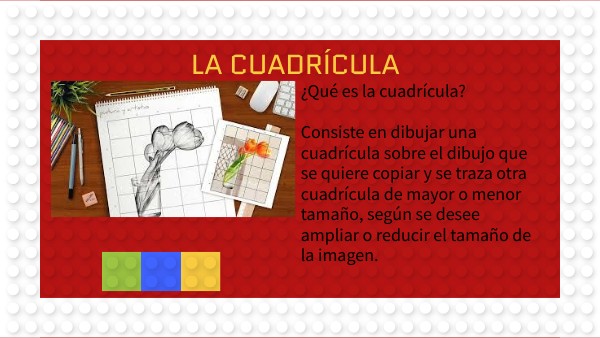¿Qué es la cuadrícula? Consiste en dibujar una cuadrícula sobre el dibujo que se quiere copiar y se traza otra cuadrícula de mayor o menor tamaño, según se desee ampliar o reducir el tamaño de la imagen.
