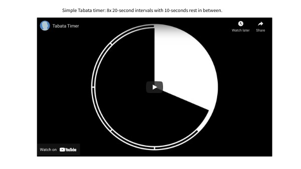 Simple Tabata timer: 8x 20-second intervals with 10-seconds rest in between.