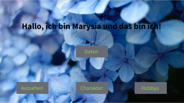 - Ich heiße Maria Pezda. - Ich bin vierzehn Jahre alt. - Ich habe Geburtstag am dritten Dezember. - Ich wohne in Wrocław, in Polen. - Ich besuche 3. Grandschule in Wrocław.