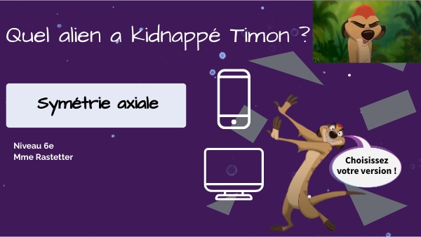Réponds correctement aux 5 énigmes : chacune d'elles te donnera un indice (yeux, nez, oreilles, etc) pour dessiner le portrait robot de l'alien responsable du kidnapping de Timon.