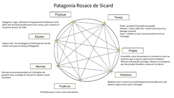 Patagonia , logo, vêtement et équipement d'éxtérieur et de plein aire de haute performance éco-conçu, prix compris en moyenne autour de 150€.