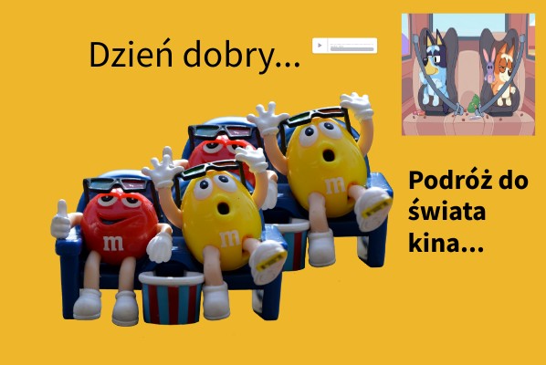 Połącz liniami osoby pracujące na planie filmowym z odpowiednimi przedmiotami. Umieść nalepki z podpisami. Powiedz, kto jest potrzebny, żeby powstał film. Następnie narysuj kamerę i taśmę bez odrywania ręki.