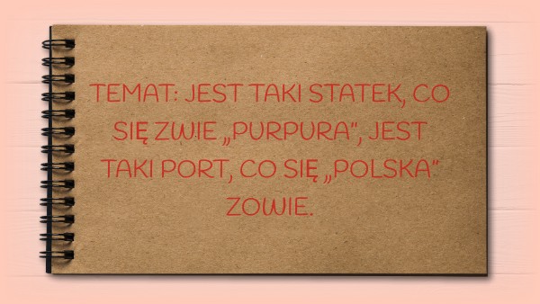 TEMAT: JEST TAKI STATEK, CO SIĘ ZWIE „PURPURA”, JEST TAKI PORT, CO SIĘ „POLSKA” ZOWIE.
