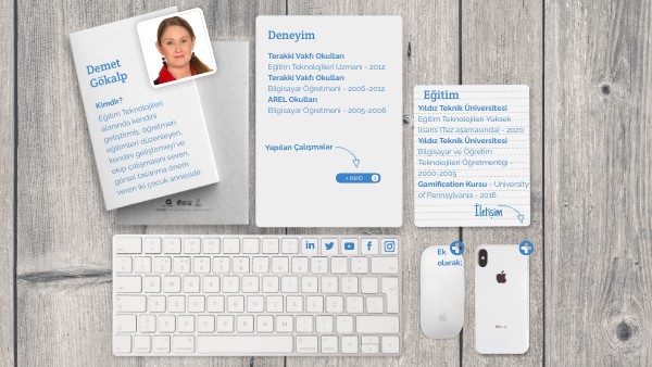 Eğitim Teknolojileri alanında kendini geliştirmiş, öğretmen eğitimleri düzenleyen, kendini geliştirmeyi ve ekip çalışmasını seven, görsel tasarıma önem veren iki çocuk annesidir.