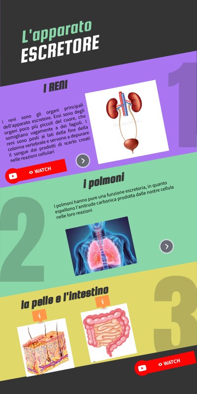 i reni sono gli organi principali dell'apparato escretore. Essi sono degli organi poco più piccoli del cuore, che somigliano vagamente a dei fagioli. I reni sono posti ai lati della fine della colonna vertebrale e servono a depurare il sangue dai prodotti di scarto creati nelle reazioni cellulari