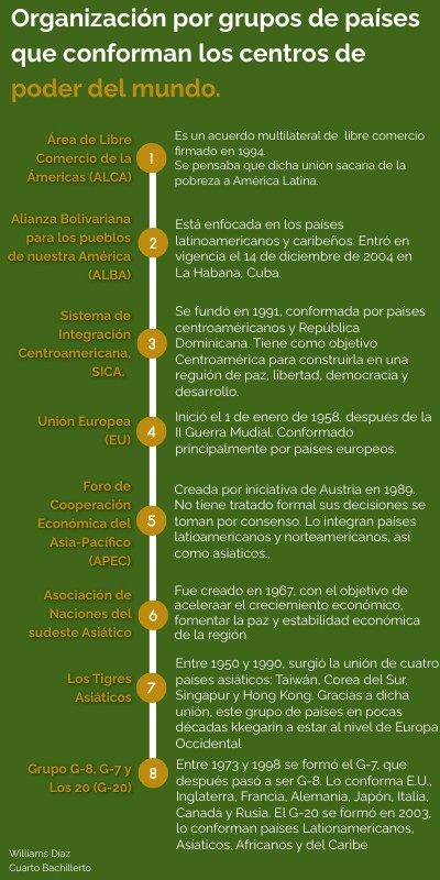 Organización por grupos de países que conforman los centros de poder del mundo.