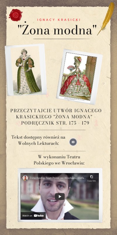 Przeczytajcie utwór Ignacego Krasickiego "Żona modna" - podręcznik str. 175 - 179