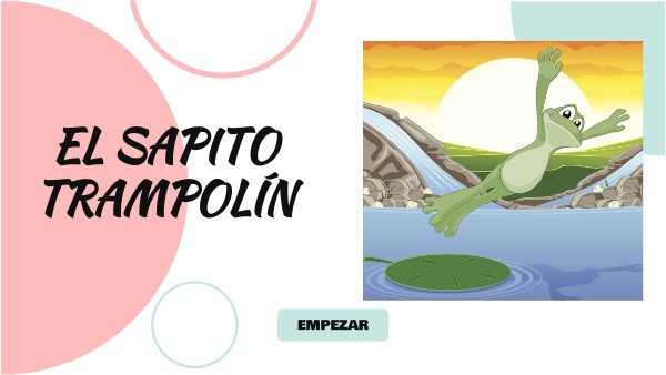 Trampolín era un sapo diminuto que vivía con su familia, en una charca de nenúfares. Aunque era pequeño de tamaño, tenía un sueño muy grande: ser el mejor saltador de todos los sapos. Para cumplir su aspiración, decidió apuntarse al concurso de salto más importante del país, que se celebraba en el plazo de tres meses, en un estanque cercano a la charca.