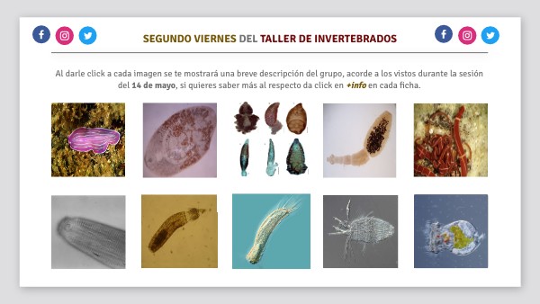 Fichas informativas de invertebrados que se vieron en la segunda sesión del taller, donde se tocan los asquelmintos.