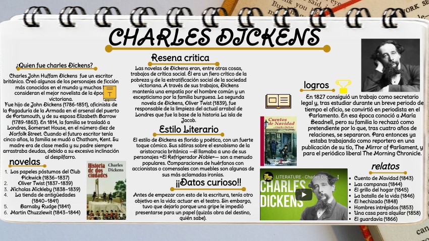 Charles John Huffam Dickens fue un escritor británico. Creó algunos de los personajes de ficción más conocidos en el mundo y muchos lo consideran el mejor novelista de la época victoriana. Fue hijo de John Dickens (1786-1851), oficinista de la Pagaduría de la Armada en el arsenal del puerto de Portsmouth, y de su esposa Elizabeth Barrow (1789-1863). En 1814, la familia se trasladó a Londres, Somerset House, en el número diez de Norfolk Street. Cuando el futuro escritor tenía cinco años, la familia se mudó a Chatham, Kent. Su madre era de clase media y su padre siempre arrastraba deudas, debido a su excesiva inclinación al despilfarro.