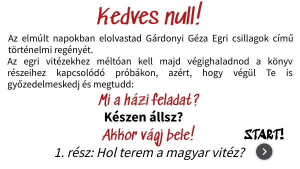 Az egri vitézekhez méltóan kell majd végighaladnod a könyv részeihez kapcsolódó próbákon, azért, hogy végül Te is győzedelmeskedj és megtudd: