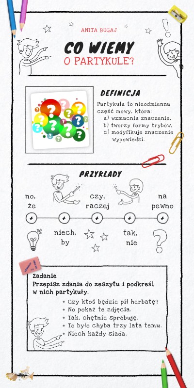 Partykuła to nieodmienna część mowy, która: a) wzmacnia znaczenie, b) tworzy formy trybów, c) modyfikuje znaczenie wypowiedzi.