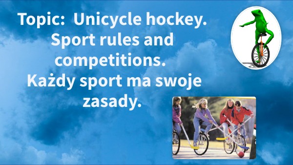 Topic: Unicycle hockey. Sport rules and competitions. Każdy sport ma swoje zasady.