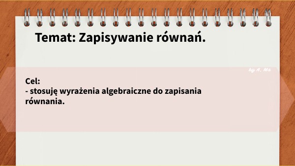 Cel: - stosuję wyrażenia algebraiczne do zapisania równania.