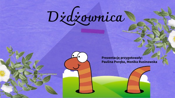 Pewna dżdżownica w ziemi mieszkała, jednak z tej ziemi wyjść się wciąż bała. Nie miała rączek nie miała nóżek, i nie wiedziała jak obejść kałużę. Żadnego głosu nie wydawała, nie gulgotała i nie mruczała. Powoli po ziemi się przesuwała, innych zwierzątek bardzo się bała. Każdy kto na swej drodze dżdżownicę spotykał, uważał ją za największego szkodnika. Nikt z nią też nie chciał się zaprzyjaźnić, ani rozmawiać, ani się bawić. Lecz dnia pewnego mały chłopczyk sprawił, że u dżdżownicy uśmiech się pojawił. Powiedział wszystkim, że dżdżownica też, jest bardzo ważna, ważniejsza niż jeż. Spulchnia ona glebę po to żeby żyła, i co roku ludziom plony przynosiła. Na cześć dżdżownicy odbył się bal wielki, nawet leniwy ślimak wyszedł ze swej muszelki, Odtąd dżdżownica przyjaciół swych miała chodziła po ziemi, bo się już nie bała.