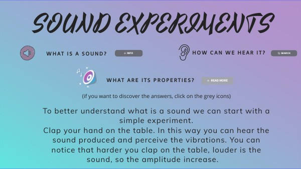 To better understand what is a sound we can start with a simple experiment. Clap your hand on the table. In this way you can hear the sound produced and perceive the vibrations. You can notice that harder you clap on the table, louder is the sound, so the amplitude increase.