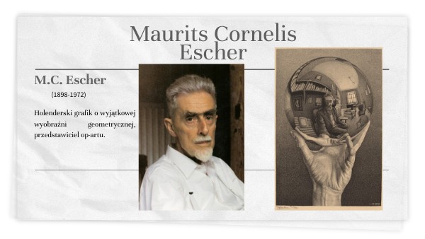 Holenderski grafik o wyjątkowej wyobraźni geometrycznej, przedstawiciel op-artu.