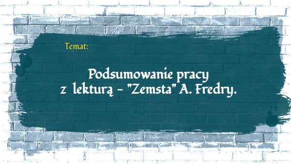 Podsumowanie pracy z lekturą - "Zemsta" A. Fredry.