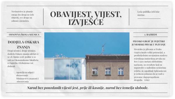 Što se dogodilo, tko je u tom događaju sudjelovao, gdje i kada se dogodio - samo su neka od pitanja na koja odgovara svaka vijest. Danas ćemo upoznati tri novinarske vrste - vijest, obavijest i izvješće.