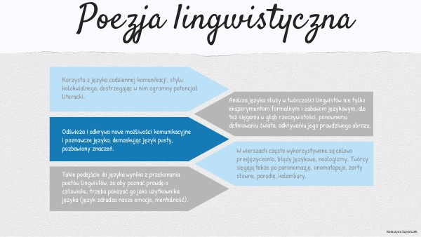 Takie podejście do języka wynika z przekonania poetów lingwistów, że aby poznać prawdę o człowieku, trzeba pokazać go jako użytkownika języka (język zdradza nasze emocje, mentalność).