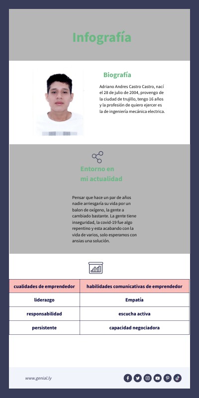 Adriano Andres Castro Castro, nací el 28 de julio de 2004, provengo de la ciudad de trujillo, tengo 16 años y la profesión de quiero ejercer es la de ingeniería mecánica electrica.