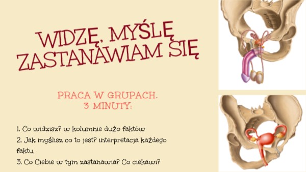 1. Co widzisz? w kolumnie dużo faktów 2. Jak myślisz co to jest? interpretacja każdego faktu 3. Co Ciebie w tym zastanawia? Co ciekawi?