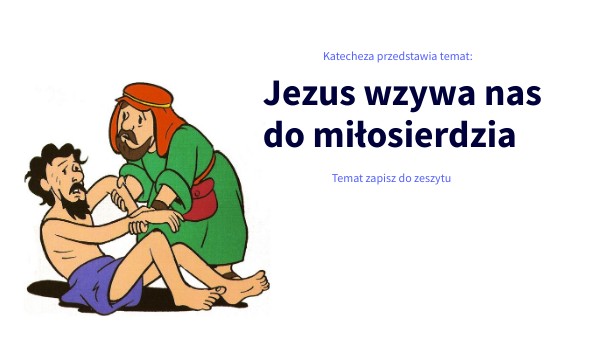 Ten zaś, kto udziela pomocy, okazuje się prawdziwym bliźnim. Jezus anonimowego Samarytanina uczynił głównym bohaterem tej przypowieści. Człowiek, którego pokazał Jezus, miał dobre, miłosierne serce, w którym nie było fałszu i podstępu. Dlatego każdy z nas powinien starać się z nim utożsamić.Ja też mogę stać się dobrym człowiekiem o miłosiernym sercu.