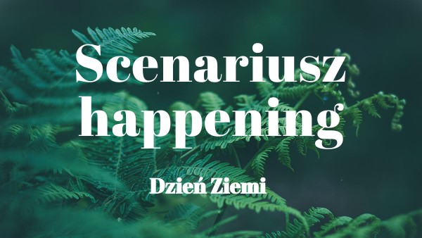 1. Osoby, organizujące happening będą ubrane zwyczajnie, aby nie wyróżniały się wśród ludzi 2. Potrzeba będzie jakieś odpady, np. zużyte butelki, reklamówki, papierki itp. 3. Happening zostanie zorganizowany w jakimś miejskim parku gdzie przewija się dużo ludzi 4. Kilka aktorów idąc parkiem wyrzuci jakieś śmieci, np. z kieszeni po zjedzonym cukierku 5. Inni aktorzy będą siedzieli gdzieś na ławkach i rozmawiali między sobą, aby nie było to podejrzane 6. Kiedy jakaś osoba podniesie śmieć z ziemi i wyrzuci do kosza zostanie nagrodzona oklaskami 7. Tak można powtarzać co jakiś czas i włączać do tego osoby spotkane w parku 8. Po skończonych scenkach można zrobić pogadankę dla dzieci dlaczego warto segregować śmieci i nie zaśmiecać środowiska