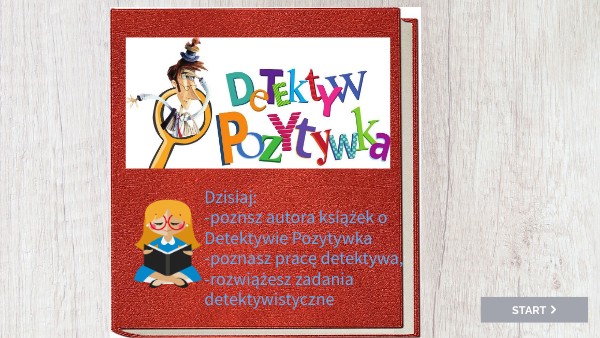 Dzisiaj: -poznsz autora książek o Detektywie Pozytywka -poznasz pracę detektywa, -rozwiążesz zadania detektywistyczne