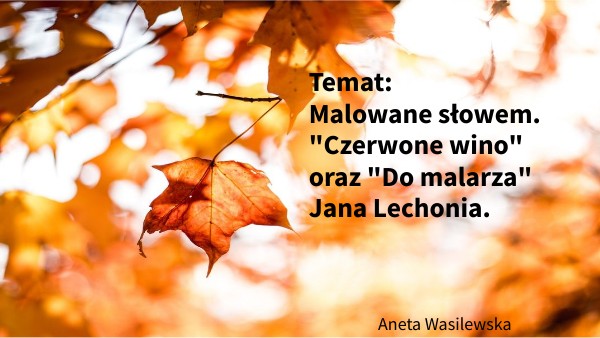 Temat: Malowane słowem. "Czerwone wino" oraz "Do malarza" Jana Lechonia.