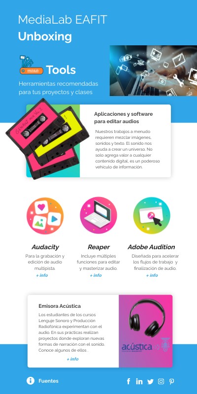 Nuestros trabajos a menudo requieren mezclar imágenes, sonidos y texto. El sonido nos ayuda a crear un universo. No solo agrega valor a cualquier contenido digital, es un poderoso vehículo de información.