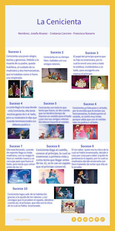 Cenicienta una joven alegre, bonita y generosa. Debido a la muerte de su padre, queda huérfana, al cuidado de su madrastra y dos hermanastras, que la trataban como si fuera una empleada.
