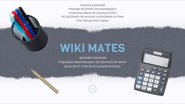 WIKI MATES es una wiki en línea que proporciona instrucciones útiles para solucionar paso a paso los problemas de la vida cotidiana por medio de cálculos matemáticos. La actividad está dirigida a los niños y niñas del tercer curso del 2º ciclo de la Escuela Primaria.