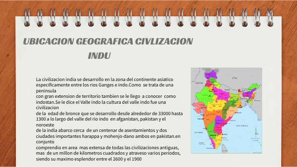 La civilizacion india se desarrollo en la zona del continente asiatico especificamente entre los rios Ganges e indo.Como se trata de una peninsula con gran extension de territorio tambien se le llego a conocer como indostan.Se le dice el Valle indo la cultura del valle indo fue una civilizacion de la edad de bronce que se desarrollo desde alrededor de 33000 hasta 1300 a lo largo del valle del rio indo en afganistan, pakistan y el noroeste de la india abarco cerca de un centenar de asentamientos y dos ciudades importantes harappa y mohenjo-dano ambos en pakistan.en conjunto comprendio en area mas extensa de todas las civilizaciones antiguas, mas de un millon de kilometros cuadrados y atraveso varios periodos, siendo su maximo esplendor entre el 2600 y el 1900