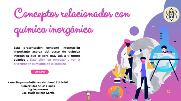 Esta presentación contiene información importante acerca del curso de química inorgánica que te sera muy útil a ti futuro químico . Dale click en empezar y ven a divertirte en el mundo de la química